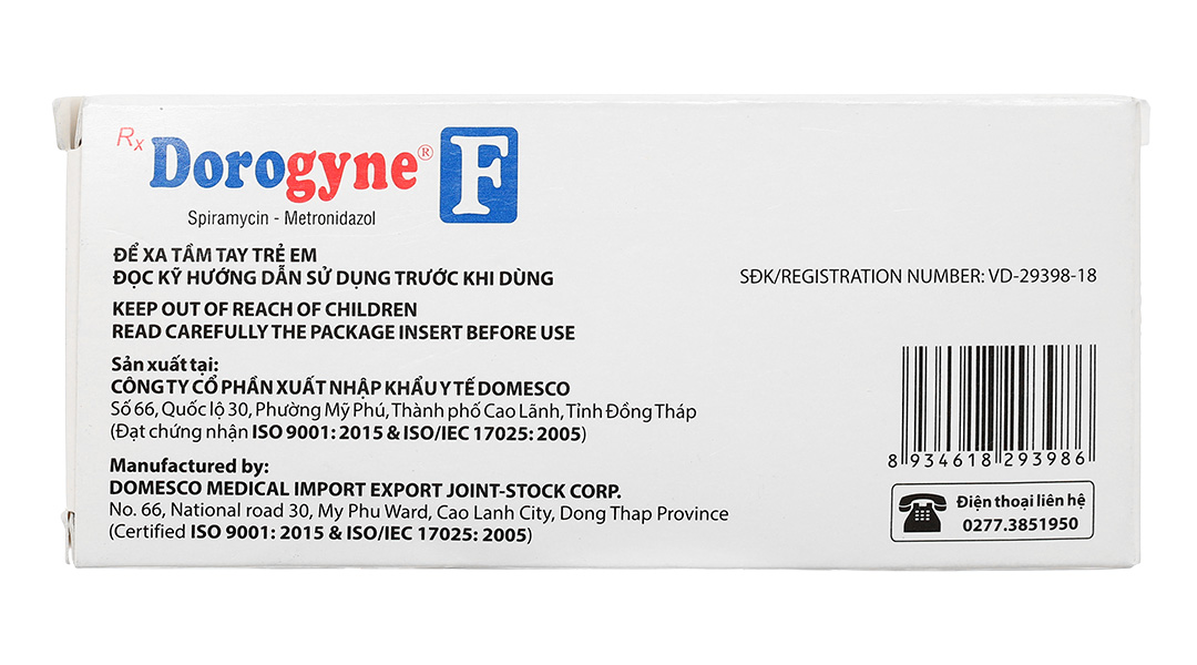 Dorogyne F là thuốc phối hợp giữa spiramycin kháng sinh nhóm macrolid và metronidazol kháng sinh nhóm 5-nitroimidazol, đặc trị các bệnh nhiễm khuẩn răng miệng.