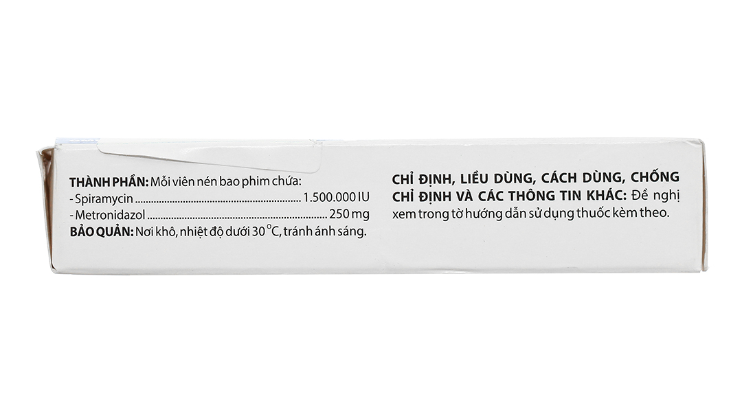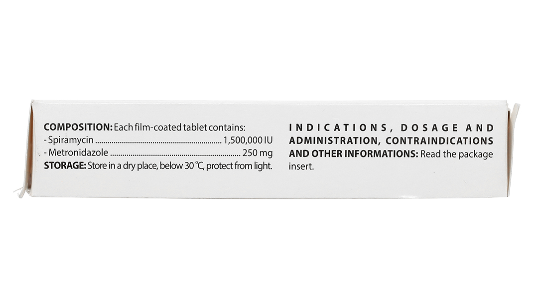 Nhóm dược lý: Kết hợp của kháng sinh spiramycin (nhóm macrolid) và kháng sinh metronidazol (nhóm 5-nitroimidazol), dùng cho các bệnh nhiễm khuẩn răng miệng.