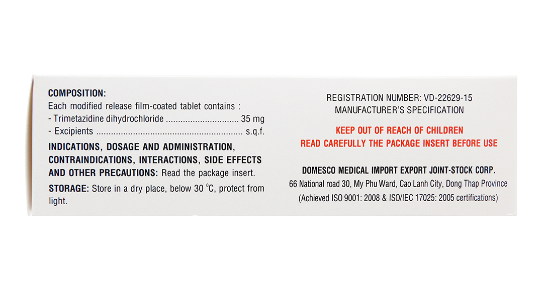 Công dụngĐiều trị triệu chứng ở bệnh nhân đau thắt ngực ổn định không được kiểm soát đầy đủ