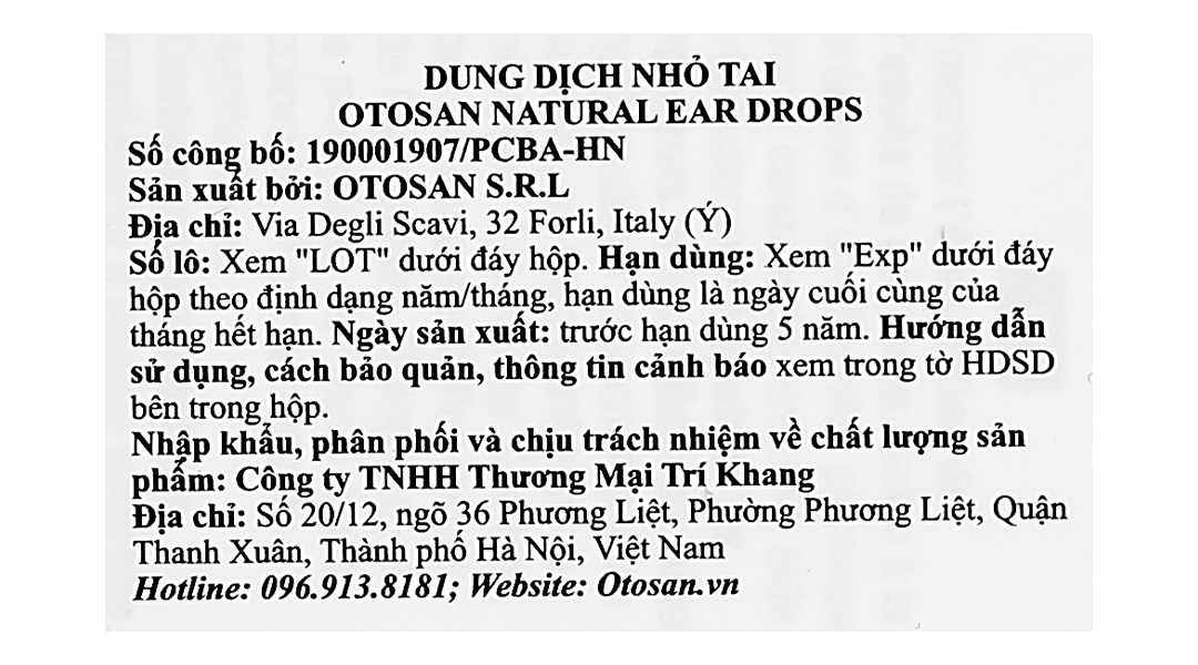 Dung dịch nhỏ tai Otosan giúp kháng khuẩn, chống viêm nhiễm trùng tai chai 10ml