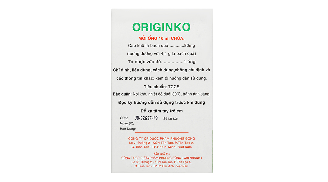 Dung dịch uống Originko trị suy giảm trí nhớ, suy tuần hoàn não (20 ống x 10ml)