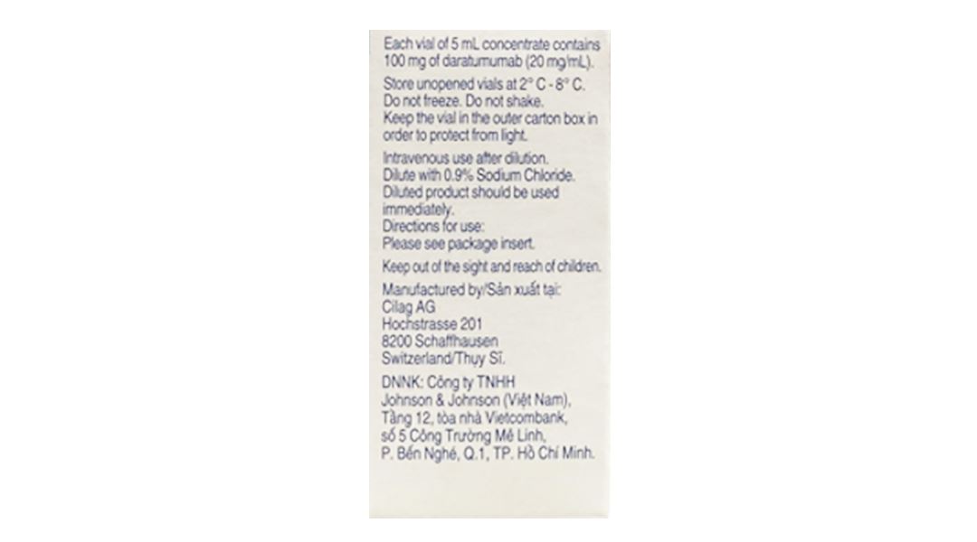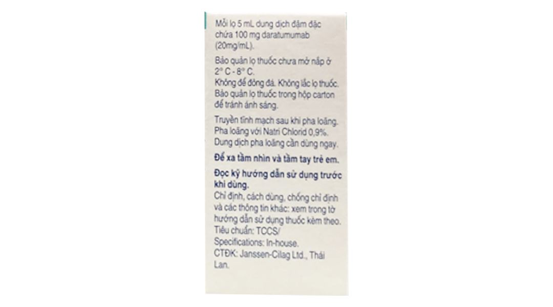 Hộp 1 lọ 5 mL chứa 100 mg daratumumab.