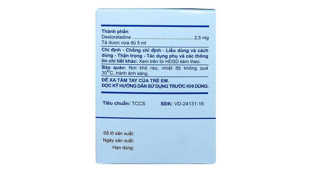 An toàn và hiệu quả khi dùng desloratadin cho trẻ em dưới 2 tuổi chưa được xác định.