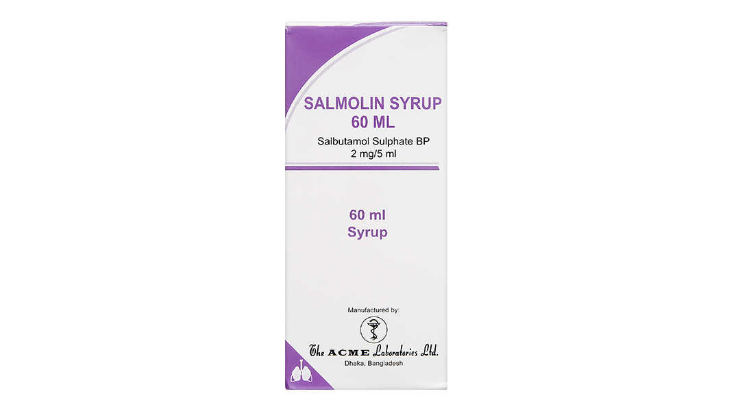 - Salbutamol là chất đồng vận chọn lọc trên thụ thể adrenergic beta-2 có tác dụng giãn phế quản ngắn (4-6 giờ) trong tắc nghẽn đường thở có khả năng hồi phục. Salmolin syrup được sử dụng để kiểm soát hen, co thắt phế quản và/hoặc tắc nghẽn đường thở có khả năng hồi phục.