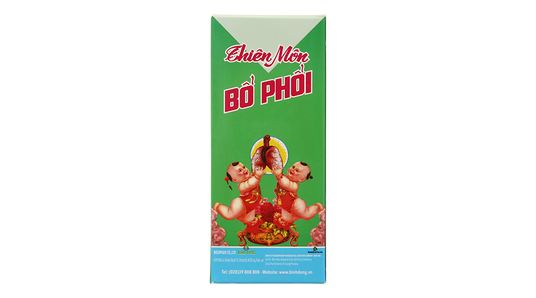 - Thiên Môn Bổ Phổi 90ml là sản phẩm thảo dược thiên nhiên, kế thừa tinh hoa Y học cổ truyền Việt Nam. Với sự kết hợp hoàn hảo của các thảo dược có tác dụng bổ phổi và tăng cường sức khỏe như Mạch môn, Trần bì, Cát cánh, Tỳ bà diệp, Bạc hà, Tang bạch bì, Tang diệp, Kinh giới, Tô tử, sản phẩm giúp làm dịu cổ họng, giảm ho khan, ho có đờm, ho lâu ngày, đồng thời hỗ trợ làm giảm các triệu chứng khó chịu như đau rát cổ họng, nghẹt mũi, hắt hơi, sổ mũi và khan tiếng ở trẻ nhỏ.
