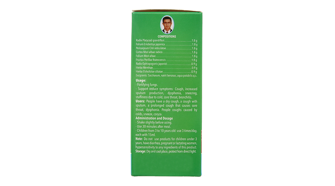 - Hỗ trợ giảm biểu hiện: Ho, tăng tiết đờm, khan tiếng, hắt hơi chảy nước mũi, nghẹt mũi do cảm lạnh, viêm họng, viêm phế quản.
