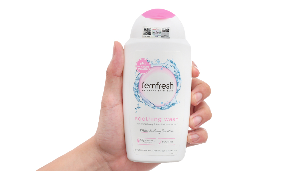 Dung dịch vệ sinh phụ nữ Femfresh Soothing Wash với chiết xuất chính từ các thành phần thiên nhiên: tinh chất Cúc Kim Tiền, tinh chất Cúc Thỷ Xa, tinh chất Lô Hội, tinh chất Kim Ngân Hoa, tinh chất quả Nam Việt Quất… giúp làm sạch, diệt khuẩn, bảo vệ và duy trì pH ổn định cho vùng kín, giúp vùng kín sạch sẽ thơm mát suốt cả ngày. Đặc biệt trong thành phần bổ sung thêm lợi khuẩn Lactobacillus giúp ngăn ngừa viêm nhiễm, nấm ngứa.