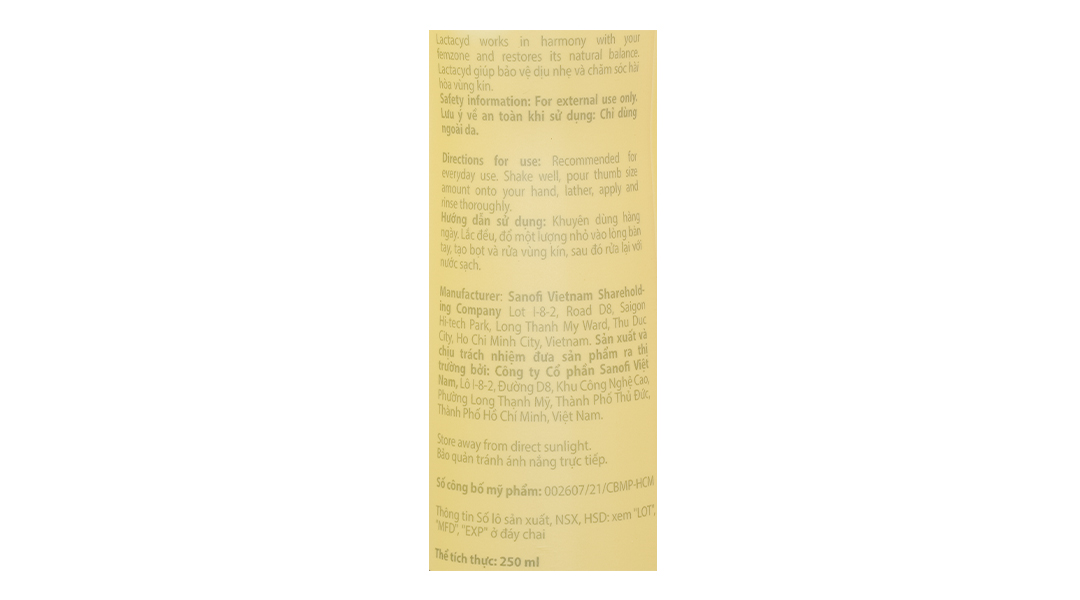 Dung dịch vệ sinh Lactacyd là sản phẩm giúp làm sạch và bảo vệ vùng kín. Tuy nhiên, nhiều sản phẩm không đảm bảo chất lượng, chứa nhiều chất tẩy rửa hóa học khiến vùng kín bị mất đi độ ẩm tự nhiên, môi trường cân bằng bị phá hủy.