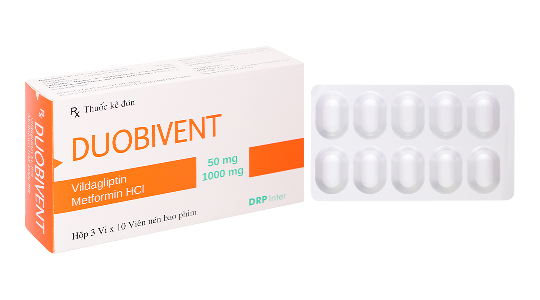 Duobivent là một phối hợp 2 thuốc điều trị chống tăng đường huyết với cơ chế bổ trợ lẫn nhau giúp tăng kiểm soát đường huyết ở bệnh nhân đái tháo đường tuýp 2: Vildagliptin – thuộc nhóm tăng cường chức năng tiểu đảo tụy và Metformin – thuộc nhóm biguanide.