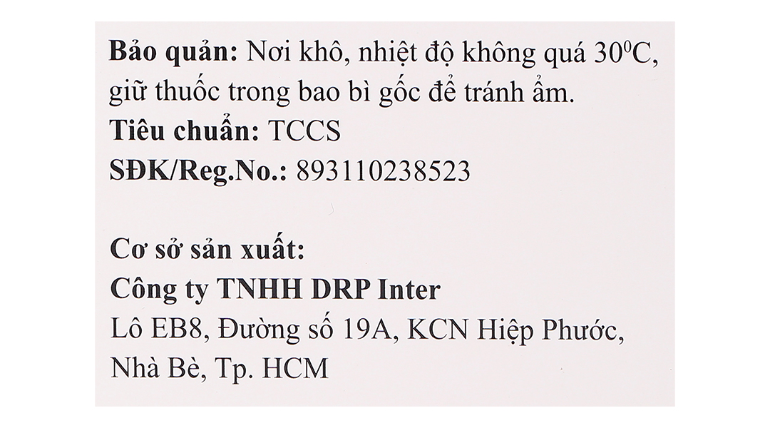 Nơi khô, nhiệt độ không quá 30°C, giữ thuốc trong bao bì gốc để tránh ẩm.