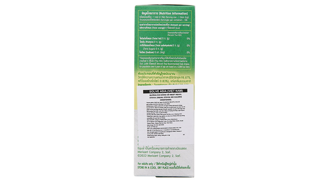 Equal Stevia hộp 200g được chiết xuất từ lá cỏ ngọt stevia, đường ăn kiêng Equal Stevia được sử dụng cùng trà, cà phê, hoặc các món ăn để giảm lượng đường nhưng vẫn giữ nguyên vị ngọt.