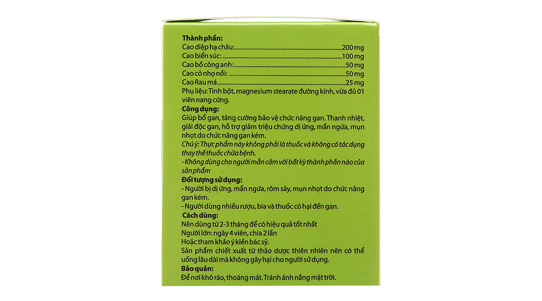 Đối tượng sử dụngNgười dùng nhiều rượu, bia và thuốc có hại đến gan