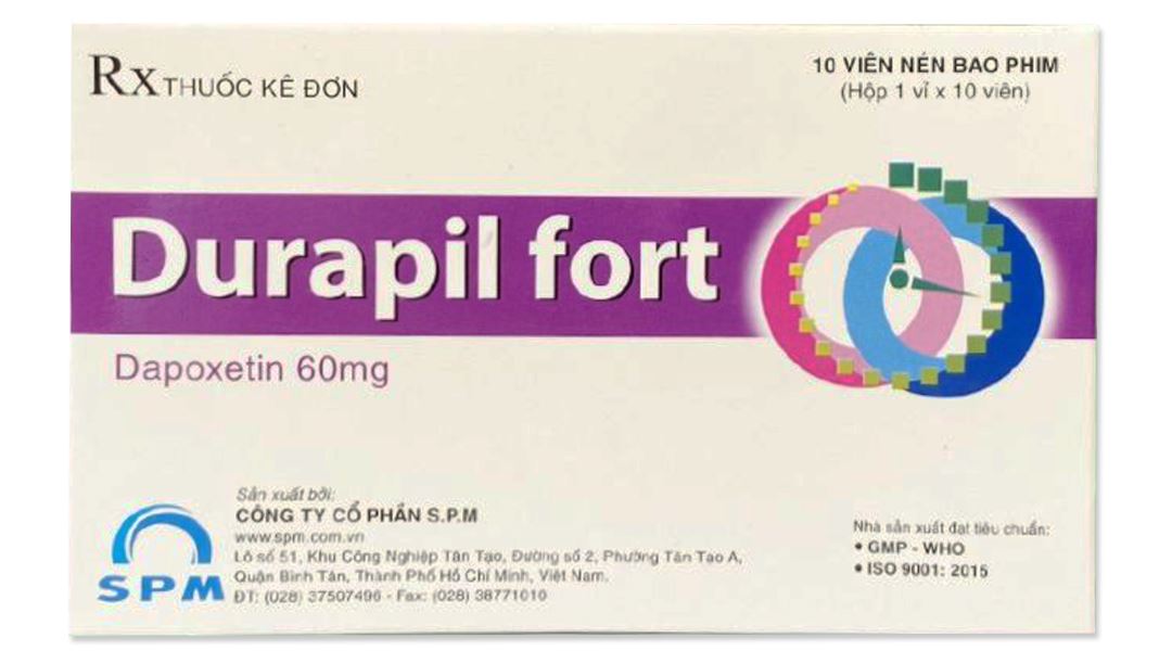 Dùng chung thuốc ức chế CYP3A4 trung bình: Phải thận trọng và không vượt quá liều 30mg. Dùng chung thuốc ức chế CYP2D6 mạnh: Cần thận trọng khi tăng liều đến 60 mg ở những bệnh nhân dùng thuốc ức chế CYP2D6 mạnh hoặc ở những bệnh nhân được biết là có kiểu gen CYP2D6 chuyển hóa yếu, vì điều này có thể làm tăng nồng độ thuốc trong máu dẫn đến tăng cao nguy cơ và mức độ nghiêm trọng của các tác dụng phụ phụ thuộc liều. Rối loạn máu: Đã có báo cáo về xuất huyết bất thường khi dùng thuốc SSRIs. Cần thận trọng ở bệnh nhân dùng dapoxetin, đặc biệt là trong việc sử dụng đồng thời với các thuốc ảnh hưởng đến chức năng tiểu cầu (ví dụ, thuốc chống loạn thần không điển hình và các phenothiazin, acid acetylsalicylic, các thuốc chống viêm không steroid [NSAID], thuốc chống tiểu cầu) hoặc thuốc chống đông máu (ví dụ, warfarin), cũng như ở những bệnh nhân có tiền sử rối loạn chảy máu hoặc đông máu. Suy thận: Dapoxetin không được khuyến cáo sử dụng cho bệnh nhân suy thận nặng và cần thận trọng ở bệnh nhân suy thận nhẹ hoặc trung bình. Rối loạn về mắt: Việc sử dụng dapoxetin đã được báo cáo là có liên quan với triệu chứng ở mắt như giãn đồng từ và đau nhãn cầu. Dapoxetin nên được sử dụng thận trọng ở những bệnh nhân có áp lực nội nhãn tăng hoặc những người có nguy cơ bệnh tăng nhãn áp góc đóng (glaucome góc đóng). Không dung nạp Lactose: Những bệnh nhân có vấn đề di truyền hiếm gặp của tình trạng không dung nạp galactose, thiếu Lapp lactase hoặc kém hấp thu glucose-galactose thì không nên dùng thuốc này. Các dấu hiệu cần lưu ý và khuyến cáo: Sử dụng đồng thời các thuốc ức chế mạnh CYP3A4 là chống chỉ định. Liều nên được giới hạn 30 mg khi người bệnh dùng đồng thời điều trị bằng thuốc ức chế CYP3A4 vừa phải và cần thận trọng. Phản ứng khi ngưng điều trị đột ngột: Gây mất ngủ và chóng mặt. – Thai kỳ và cho con búKhông sử dụng thuốc này cho phụ nữ mang thai và đang cho con bú. – Khả năng lái xe và vận hành máy mócVì thuốc gây chóng mặt và buồn ngủ không nên sử dụng cho người lái xe và vận hành máy móc. – Tương tác thuốcRượu: Sử dụng đồng thời dapoxetin với rượu có thể làm tăng tác dụng của rượu liên quan đến khả năng nhận thức và cũng có thể làm tăng các tác dụng ngoại. Người bệnh không nên uống rượu khi sử dụng dapoxetin. Sử dụng đồng thời thuốc có tác dụng cường giao cảm: Không dùng đồng thời dapoxetin với các thuốc gây hưng phấn hoặc các thuốc gây hưng phấn có tác dụng cường giao cảm như Ketamin, methylenedioxymethamphetamin (MDMA) và lysergic acid diethylamid (LSD) có thể gây nên các phản ứng ngoại ý nghiêm trọng khi sử dụng đồng thời dapoxetin (nhịp nhanh, tăng thân nhiệt, hội chứng cường giao cảm). Sử dụng đồng thời dapoxetin với các thuốc gây hưng phấn có tác dụng an thần như các thuốc gây nghiện và nhóm benzodiazepine có thể gây tình trạng ngủ gà và hoa mắt chóng mặt. Với các thuốc CYP3A4 ở mức độ trung bình: Cần thận trọng và không dùng liều vượt quá 30 mg khi dùng đồng thời với các thuốc ức chế CYP3A4 ở mức độ trung bình như erythromycin, fluconazole, amprenavir, fosamprenavir, aprepitant, verapamil và diltiazem. Với các thuốc ức chế CYP2D6 mạnh: Cần thận trọng khi tăng liều tới 60 mg khi dùng đồng thời với chất ức chế mạnh CYP2D6 hoặc khi tăng liều tới 60 mg ở những bệnh nhân khó chuyển hóa CYP2D6 vì điều này có thể làm tăng thêm mức độ nghiêm trọng của các phản ứng bất lợi của thuốc. Các thuốc có tác động lên hệ thần kinh trung ương: Nên thận trọng khi dùng đồng thời DURAPIL 30 với các thuốc có tác dụng lên hệ thần kinh trung ương. Các thuốc ức chế hệ enzym: Có thể làm giảm độ thanh thải của dapoxetin. Chất ức chế PDE5: Nên thận trọng khi kê đơn dapoxetin cho những bệnh nhân có sử dụng thuốc PDE5 vì nó có thể làm hạ huyết áp tư thế đứng. Warfarin: Nên thận trọng khi dùng dapoxetin cho bệnh nhân có sử dụng warfarin dài ngày. Tương tác với thioridazin Thioridazine có tác dụng kéo dài khoảng QTc, liên quan mật thiết với tình trạng loạn nhịp thất nghiêm trọng. Dapoxetin ức chế isoenzyme CYP2D6, do đó ức chế sự chuyển hóa của thioridazine và kết quả là nồng độ pyridazine sẽ tăng lên, tăng nguy cơ kéo dài khoảng QTc. Dapoxetin không nên được sử dụng kết hợp với thioridazine hoặc trong vòng 14 ngày kể từ ngày ngưng điều trị với thioridazine. Tương tự, thioridazine không nên được chỉ định trong vòng 7 ngày sau khi ngưng Dapoxetin. Ảnh hưởng của dapoxetin khi dùng chung Tamsulosin Đơn hoặc đa trị liệu bằng dapoxetin 30 mg hoặc 60 mg cho bệnh nhân đang được điều trị dài hạn với tamsulosin không làm thay đổi dược động học của tamsulosin. Dùng đồng thời dapoxetin và tamsulosin không làm tăng nguy cơ hạ áp thế đứng và không có sự khác biệt về nguy cơ xuất hiện hạ áp thế đứng khi dùng tamsulosin kết hợp