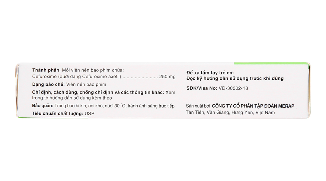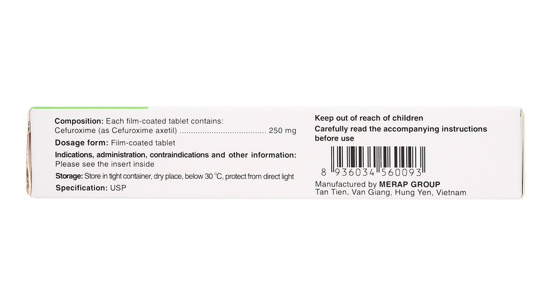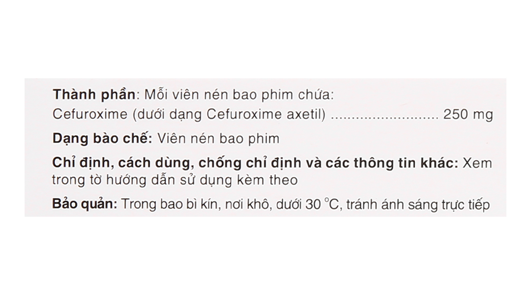 Dược chất: 250mg cefuroxim (dưới dạng cefuroxim axetil).