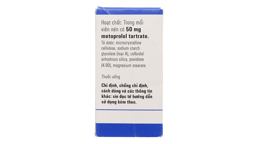 Hoạt chất: Trong mỗi viên nén có 50mg metoprolol tartrate.