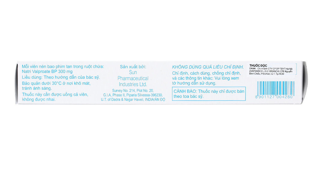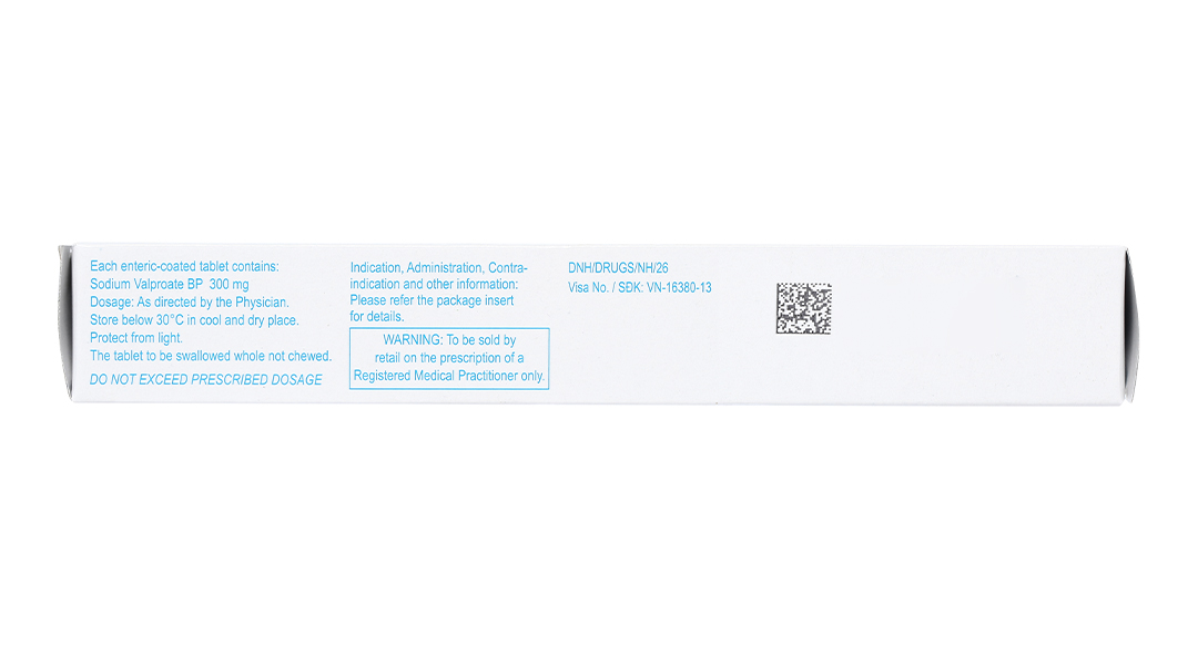 Thời gian bán hủy của Natri Valproate nằm trong khoảng 8-20 giờ. Ở trẻ em thời gian bán hủy thường ngắn hơn. Hiệu quả điều trị đạt được khi nồng độ của acid valproic trong huyết tương khoảng từ 40-100mg/l (278-694 micromol/l). Điều này phụ thuộc vào đối tượng và thuốc sử dụng đi kèm. Khoảng 6-15% nồng độ của thuốc trong huyết tương ở dưới dạng tự do.