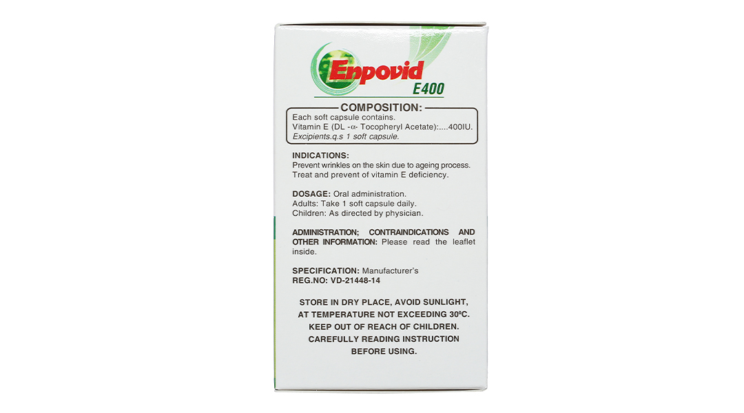 Enpovid E400 bổ sung vitamin E, ngừa lão hóa (10 vỉ x 10 viên)