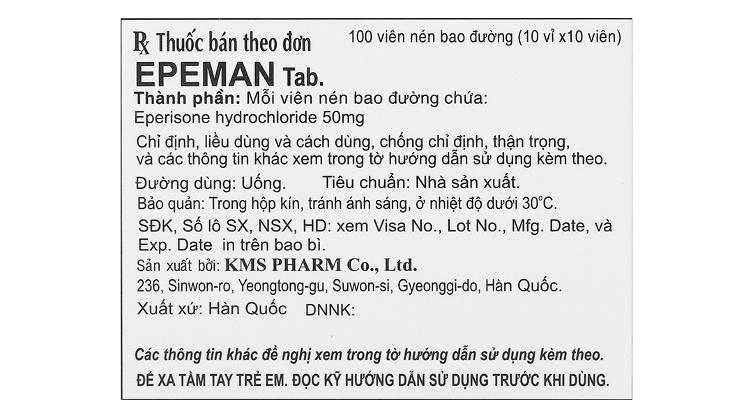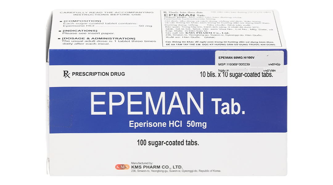 Epeman Tab. 50mg giúp cải thiện chứng tăng trương lực cơ, liệt cơ (10 vỉ x 10 viên)
