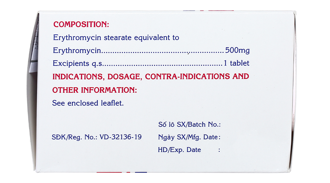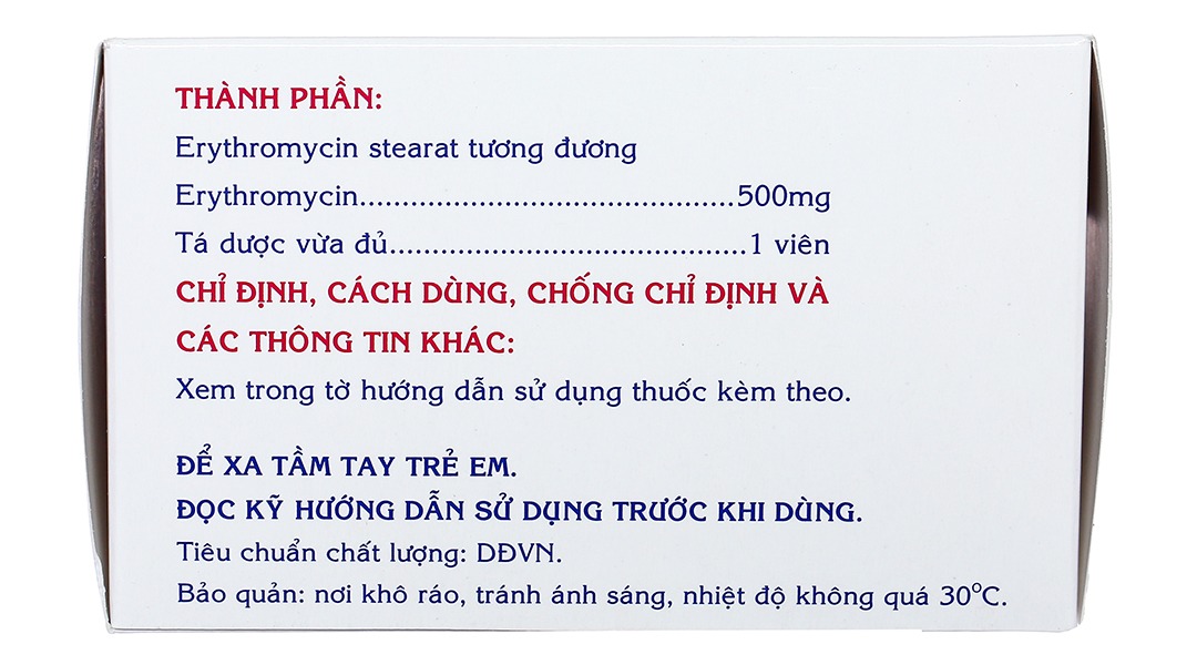 Hoạt chất: Erythromycin stearate tương đương Erythromycin 500mg