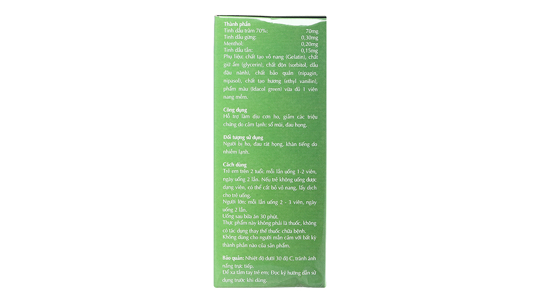 Hoạt chấtTinh dầu tràm (70%), Tinh dầu gừng, Menthol, Tinh dầu tần