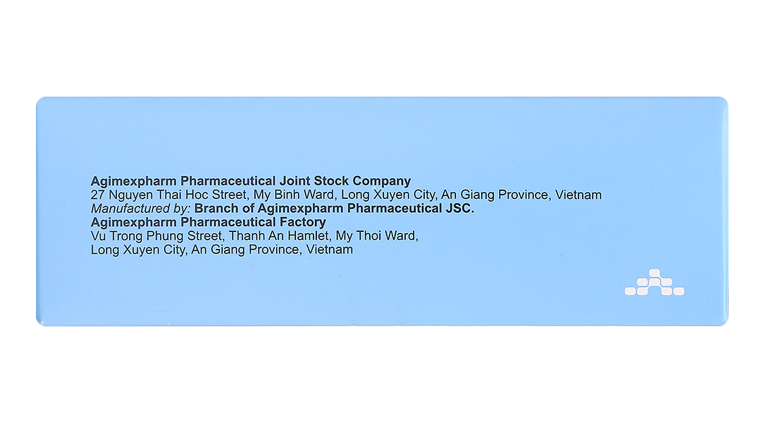 - Thành phần tá dược: DC.Lactose, Microcrystallin cellulose 112, Natri starch glycolat, Colloidal silicon dioxid, Magnesi stearat, Hydroxypropyl methylcellulose 606, Titan dioxid, Polyethylen glycol 6000, Talc, Polysorbat 80.