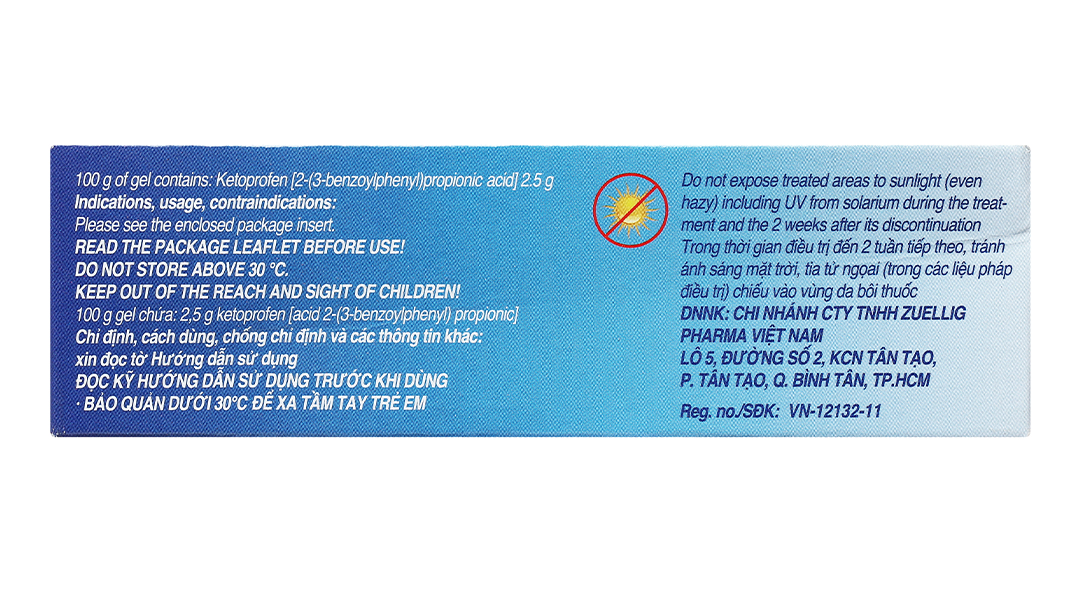- 100g chứa: 2.5g hoạt chất ketoprofen.