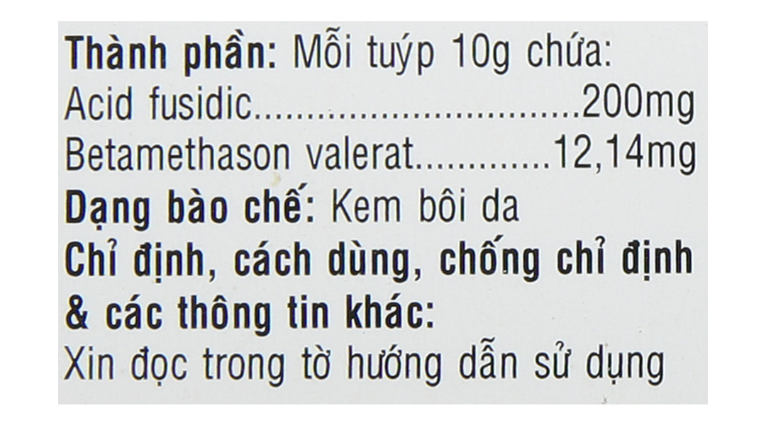 - Bệnh nhân mẫn cảm với acid fusidic/natri fusidat, betamethason valerat hoặc bất kỳ thành phần nào của thuốc.