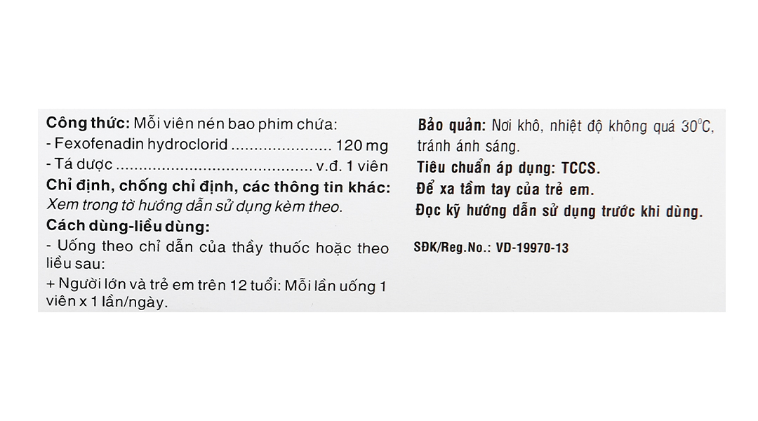 Hoạt chất: Fexofenadin hydrochlorid 120mg.