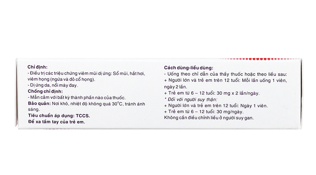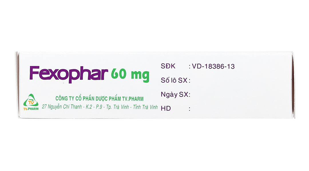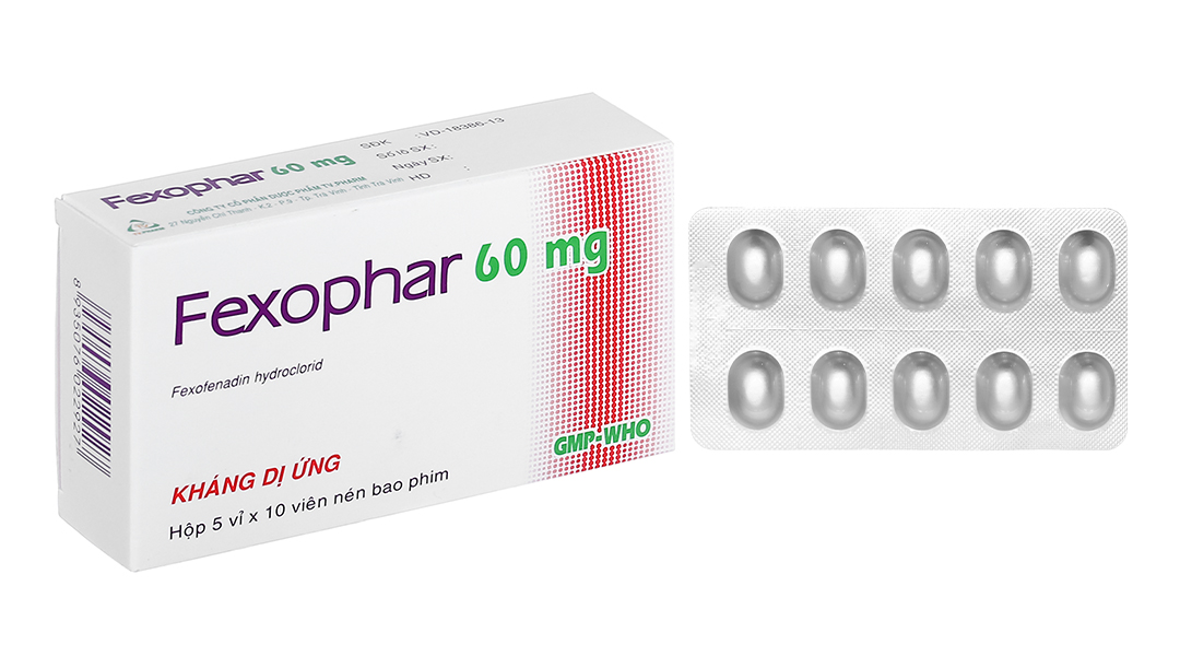 - Dược chất: Fexofenadin hydroclorid hàm lượng 60mg.