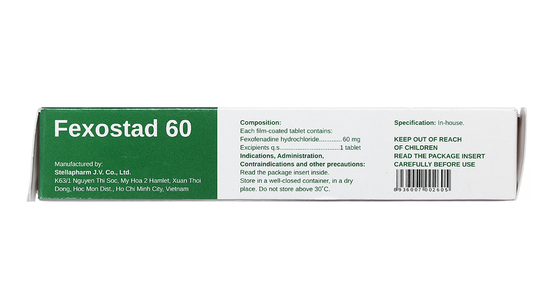 Fexostad 60 trị triệu chứng viêm mũi dị ứng, mày đay (1 vỉ x 10 viên)