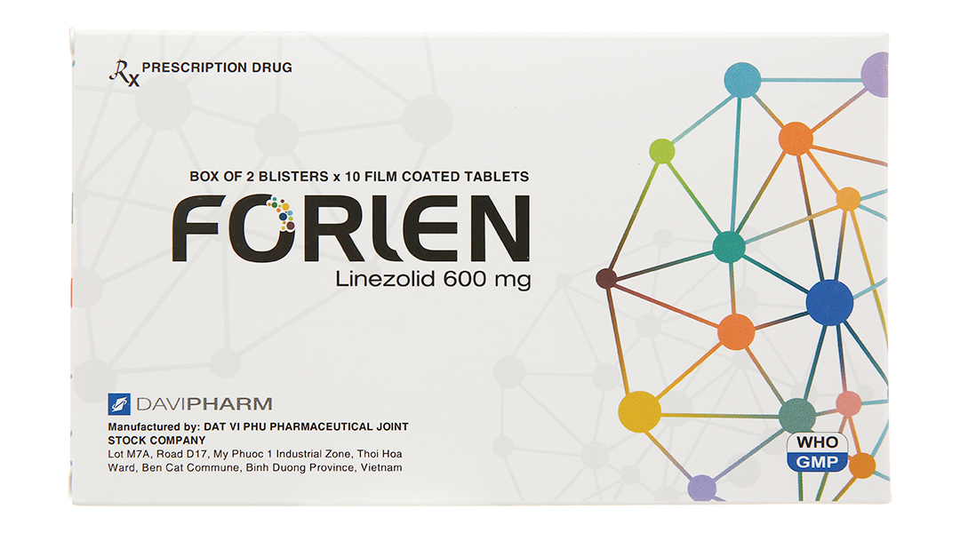 – Thận trọng khi sử dụngCó thể uống lúc đói hoặc no. Tiền sử suy tủy, suy thận (CrCl < 30 ml/ min), tăng huyết áp không kiểm soát được, u tủy tuyến thượng thận, hội chứng carcinoid, cường giáp không được điều trị, nhiễm trùng mạn tính, tiền sử động kinh, trầm cảm lưỡng cực, tâm thần phân liệt hoặc các trạng thái hôn mê cấp tính. Theo dõi công thức máu toán phần hàng tuần. Dùng thuốc sau khi thẩm phân máu. Chưa rõ liệu Linezolid hoặc các chất chuyển hóa có bị loại trừ khi thẩm phân phúc mạc. Để xa tầm tay trẻ em. – Thai kỳ và cho con búThận trọng khi sử dụng: Danh mục C (theo FDA): Hoặc là nghiên cứu trên động vật đã cho thấy tác dụng không mong muốn trên thai nhi (gây quái thai, chết thai hoặc tác động khác) và không có nghiên cứu kiểm soát ở người, hoặc chưa có nghiên cứu trên người và động vật. Chỉ nên sử dụng thuốc khi lợi ích điều trị lớn hơn nguy cơ cho thai nhi. – Tương tác thuốcSử dụng cẩn thận với chất tác động lên hệ serotonergic, dopaminergic, hoặc chất gây co mạch để giảm tỷ lệ mắc hội chứng serotonin. Ví dụ thuốc adrenergic, dopamin, epinephrin, phenylpropanolamin và pseudoephedrin có thể gây ra cao huyết áp. Đồng thời sử dụng với tramadol có thể làm tăng nguy cơ co giật. Có khả năng gây tử vong: MAOI, tránh sử dụng đồng thời hoặc sử dụng trong vòng 2 tuần sau khi ngừng MAOI để giảm nguy cơ tăng huyết áp. Đồ uống và thực phẩm có hàm lượng tyramin cao có thể gây ra tăng huyết áp. Tránh dùng tyramin ≥ 100mg mỗi bữa ăn. |