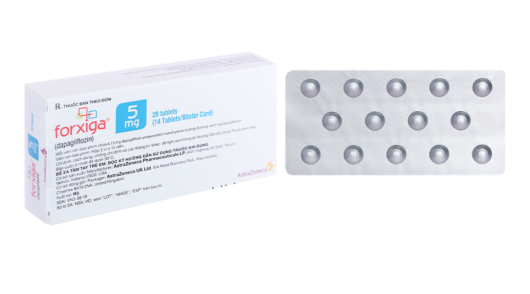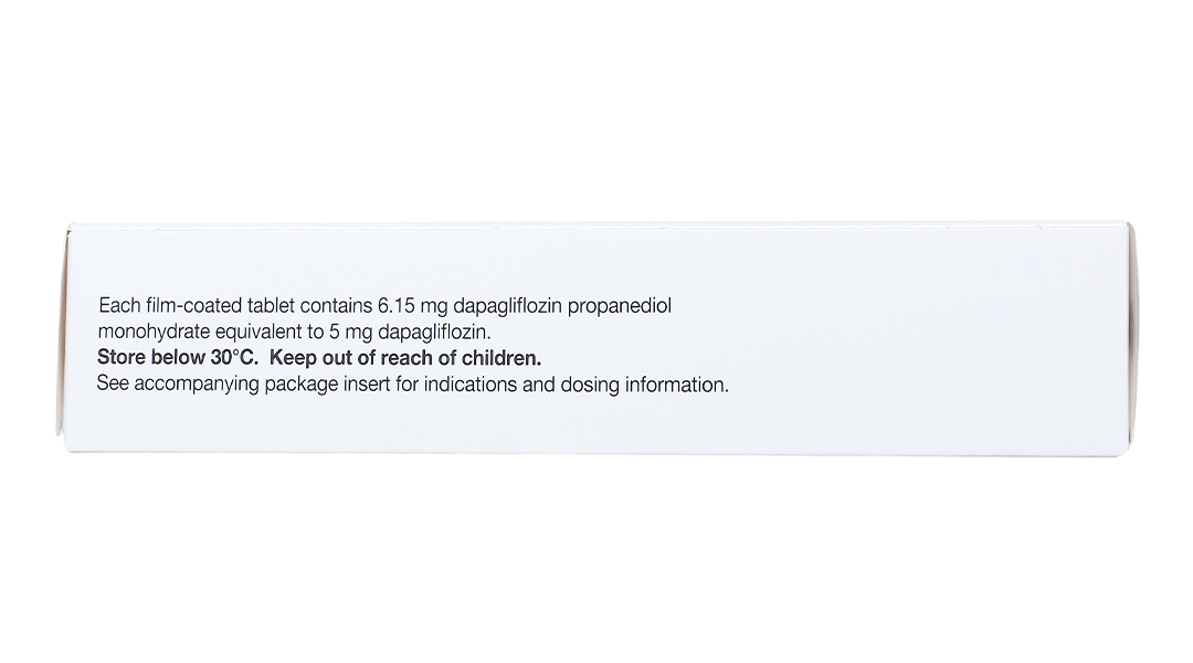 - Hoạt chất: Mỗi viên chứa 6,15mg dapagliflozin propanediol monohydrat tương đương với 5mg dapagliflozin.
