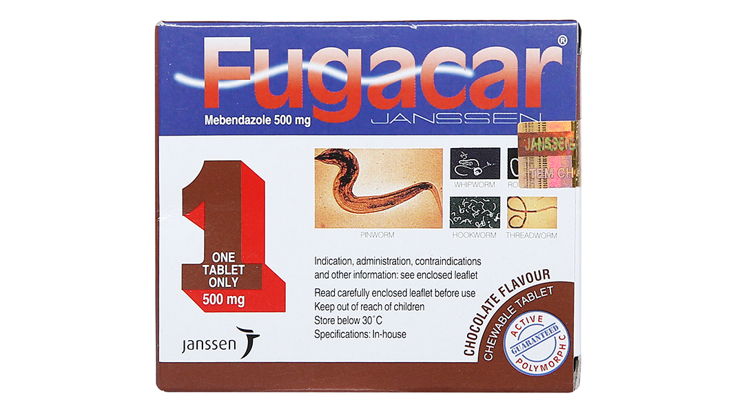 Viên nhai Fugacar vị sô cô la 500mg trị giun đường ruột (1 vỉ x 1 viên)