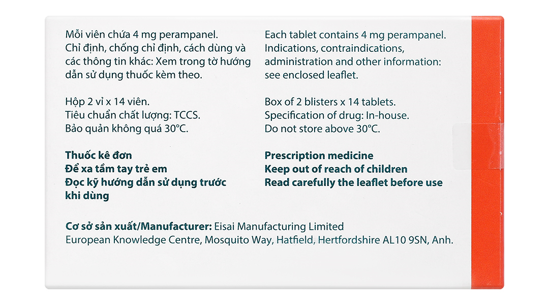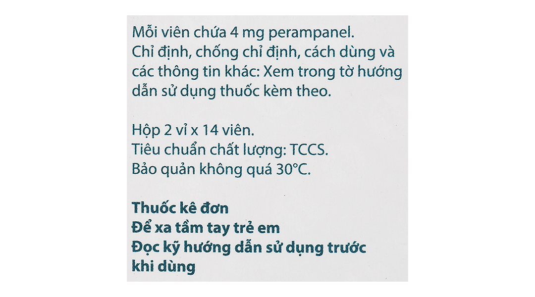 Thành phần hoạt chất: Mỗi viên nén bao phim chứa 4 mg perampanel.