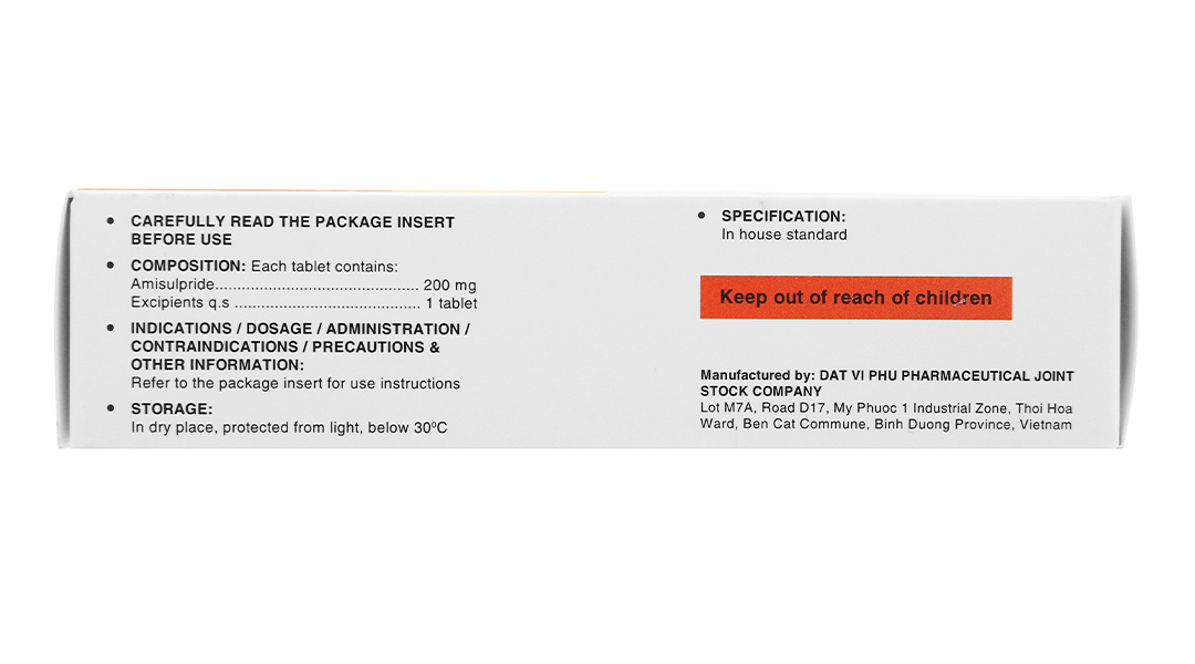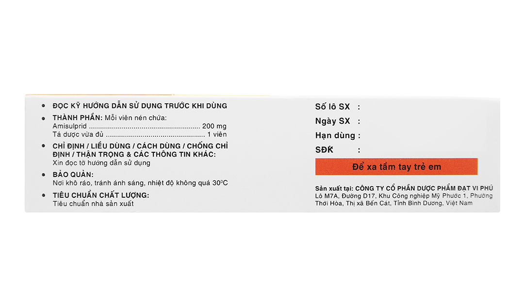 – Huyết khối tắc mạch: Một vài trường hợp bị huyết khối tắc mạch (VTE) đã được báo cáo ở bệnh nhân sử dụng thuốc chống loạn thần. Vì bệnh nhân được điều trị thuốc chống loạn thần thường mắc phải các yếu tố nguy cơ của VTE, nên xác định tất cả các yếu tố nguy cơ VTE trước, trong và sau khi sử dụng amisulprid.