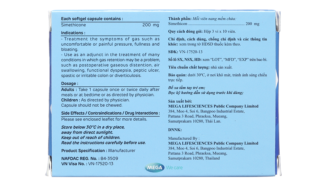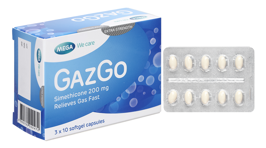 GazGo 200mg trị trướng bụng, đầy hơi (3 vỉ x 10 viên)