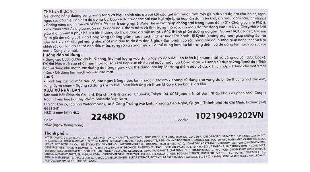 - Gel chống nắng dưỡng sáng nâng tông và hiệu chỉnh sắc da với kết cấu gel ẩm mượt, mát mịn giúp duy trì độ ẩm cho làn da, ngăn ngừa các dấu hiệu lão hóa da do tia UV, bảo vệ da trước tác hại của bụi mịn.