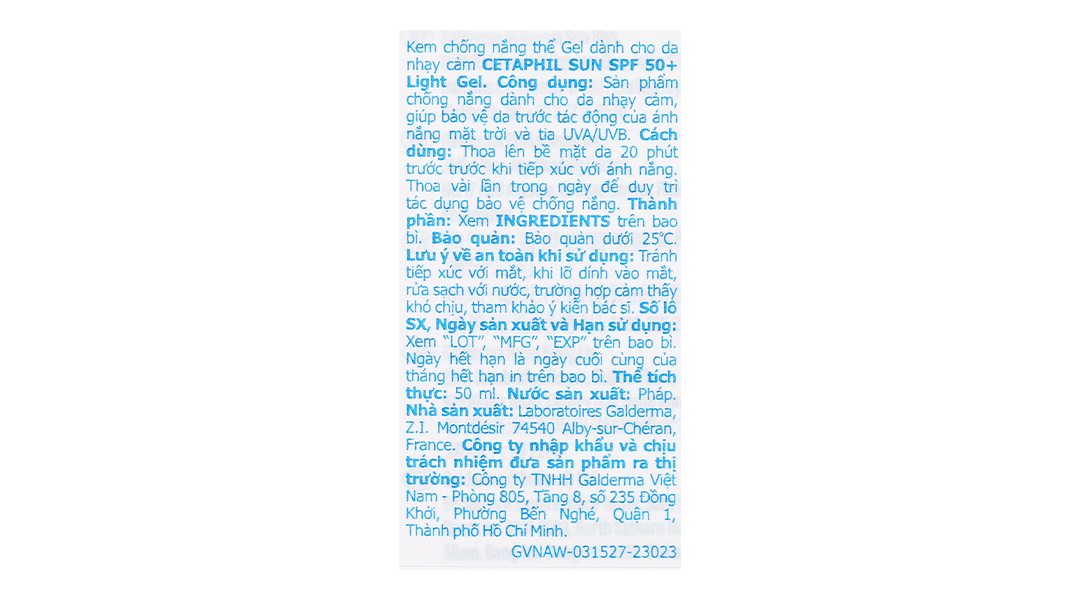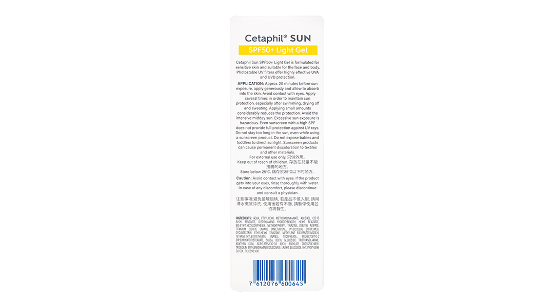 Gel chống nắng Cetaphil SPF50+ Light Gel Dịu Lành Cho Da Nhạy Cảm 50ml là sản phẩm chống nắng đến từ thương hiệu Cetaphil – Canada. Sản phẩm với màng lọc vật lý thiết kế nano Titanium Dioxide giúp bảo vệ da tối ưu & bền vững khỏi tia UVA/ UVB kết hợp vitamin E tinh khiết giúp dưỡng da dịu lành nhờ khả năng dưỡng ẩm, sáng da, ngăn ngừa lão hóa.