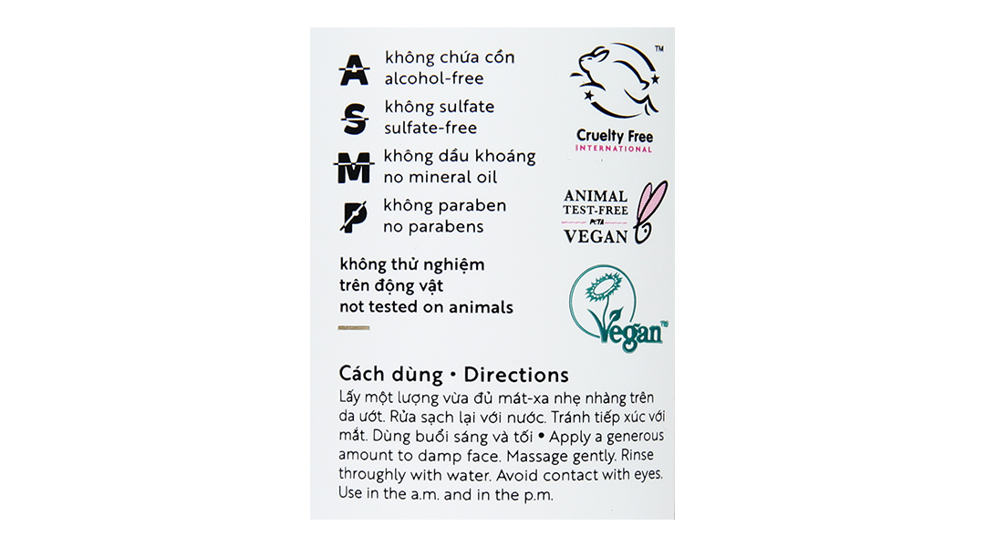 Công dụngLàm sạch bụi bẩn và thông thoáng lỗ chân lông mà không làm mất đi độ ẩm cần thiết của da