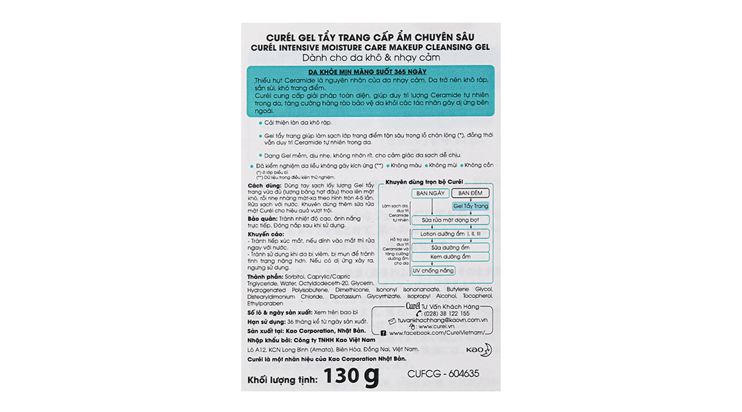 Gel tẩy trang Curél cấp ẩm chuyên sâu cho da khô & nhạy cảm tuýp 130g
