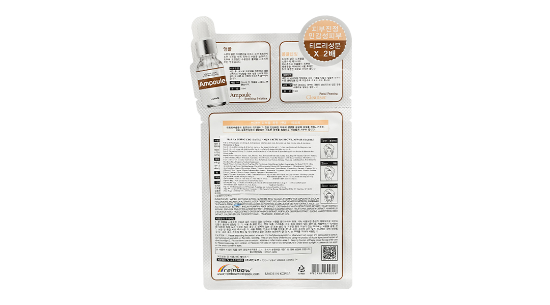 Mặt nạ Teatree Skin Renewal Rainbow giúp làm trắng da, dưỡng ẩm da, giúp làm giảm mụn, làm giảm nếp nhăn trên da, giúp da mịn màng.