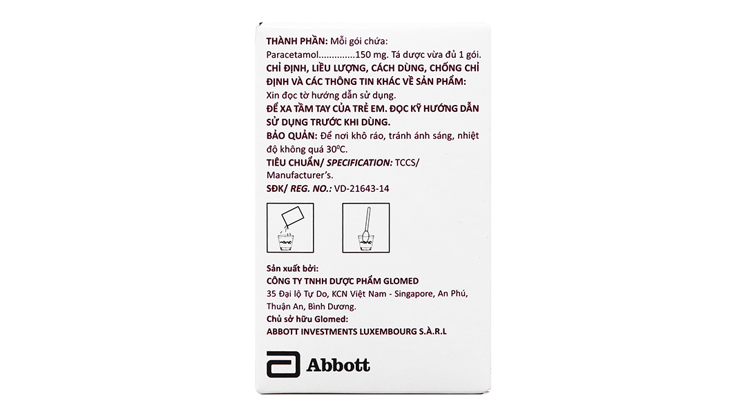 - Cho toàn bộ lượng bột thuốc của mỗi gói vào 5 ml nước, khuấy đều trước khi uống.