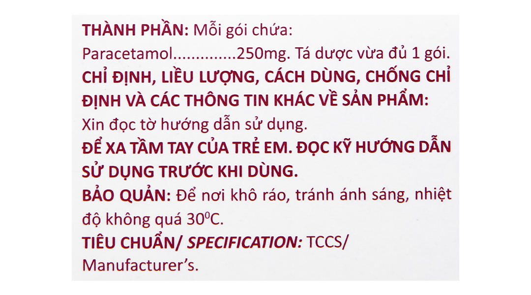 - Không được dùng paracetamol để điều trị giảm đau quá 10 ngày ở người lớn hoặc quá 5 ngày ở trẻ em nếu không có chỉ định của bác sĩ.