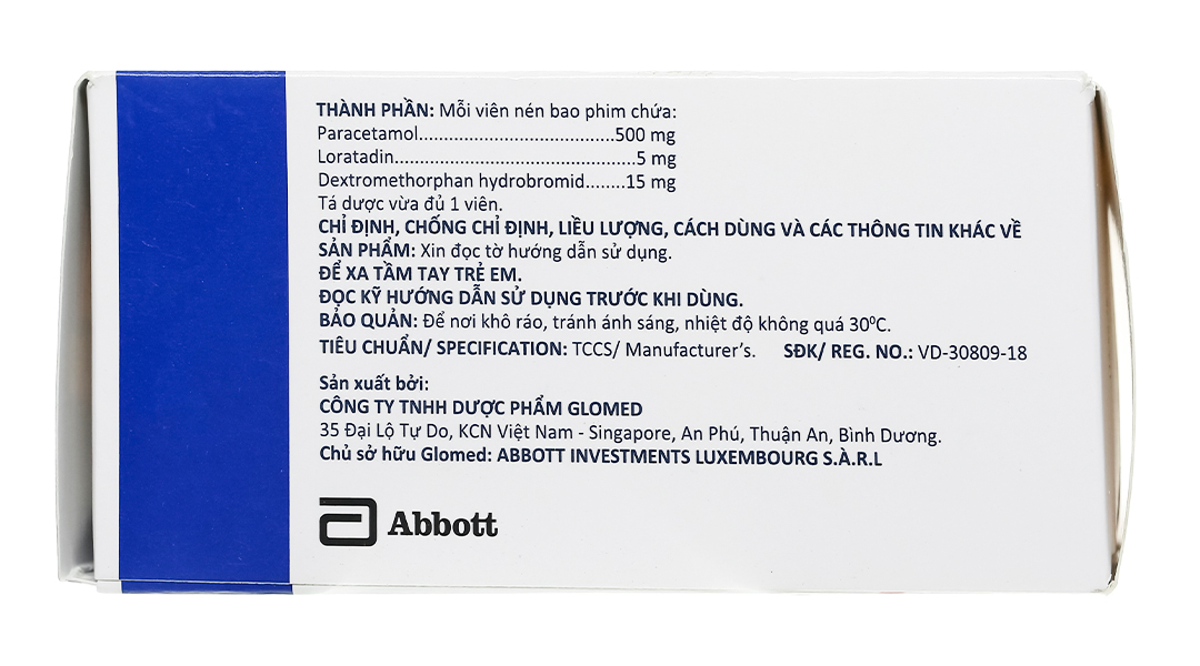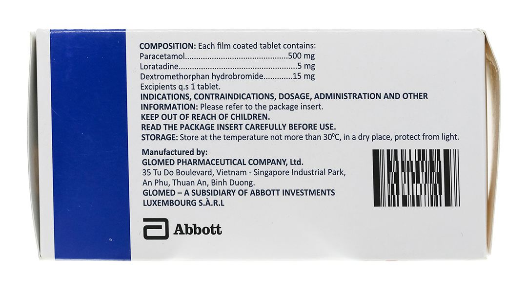 Hoạt chấtParacetamol, Dextromethorphan hydrobromid, Loratadin