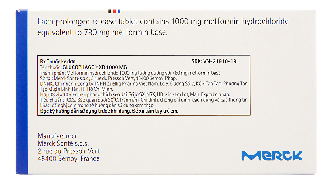 – Hoạt chất: Metformin hydrochloride 1000mg.