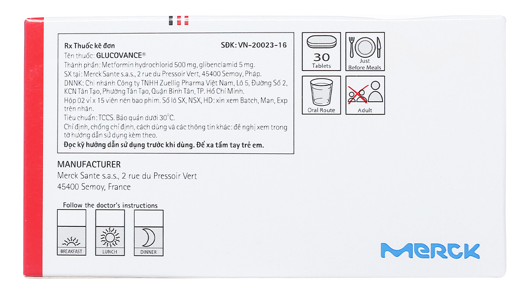 Glucovance 500mg/5mg trị đái tháo đường tuýp 2 (2 vỉ x 15 viên)