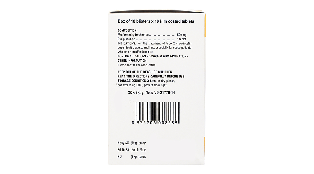 Metformin hydroclorid 500mg.