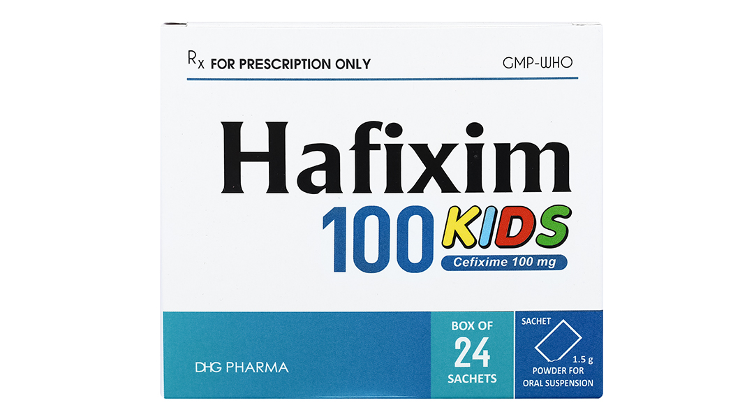 Hafixim 100 Kids với thành phần hoạt chất chính là cefixim, kháng sinh cephalosporin thế hệ thứ 3, được dùng theo đường uống. Thuốc có tác dụng diệt khuẩn. Cơ chế diệt khuẩn của cefixim tương tự như của các cephalosporin khác: gắn vào các protein đích (protein gắn penicilin) gây ức chế quá trình tổng hợp mucopeptid ở vách tế bào vi khuẩn. Cơ chế kháng cefixim của vi khuẩn là giảm ái lực của cefixim đối với protein đích hoặc giảm tính thấm của màng tế bào vi khuẩn đối với thuốc.