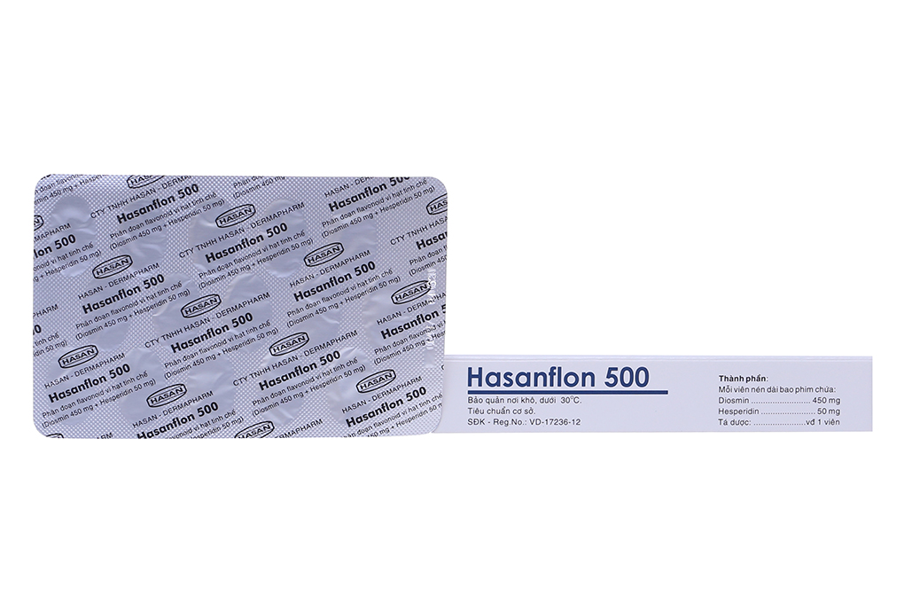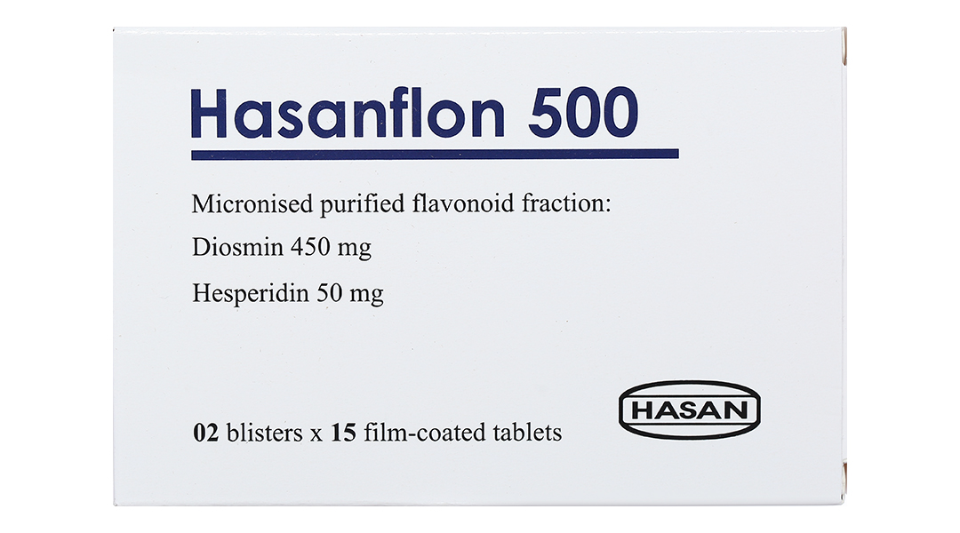 - Hỗn hợp Diosmin và Hesperidin 90/10 dạng vi hạt trong viên Hasanflon 500 có độ hấp thu và sinh khả dụng cao hơn so với dạng thông thường, thuốc có tác dụng làm tăng sự dẻo dai và làm bền thành mạch máu; làm giảm tính thấm mao mạch, tăng trương lực tĩnh mạch và kháng lực các mạch máu nhỏ, tăng cường thoát lưu dịch bạch huyết và ức chế các chất trung gian gây viêm. Do vậy, thuốc làm tăng cường hiệu quả trong điều trị bệnh trĩ và các chứng suy tĩnh mạch.