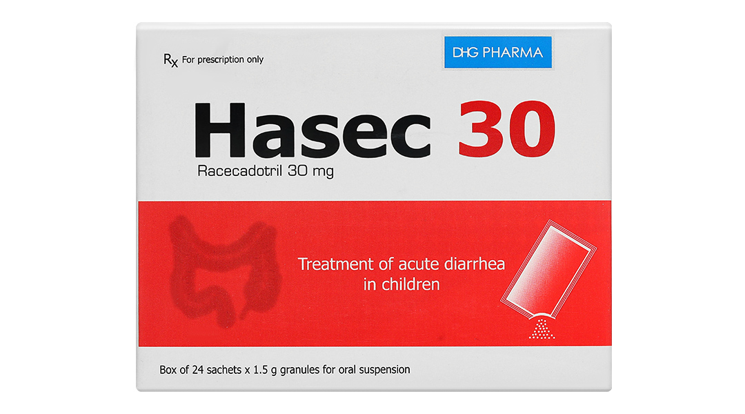 - Hasec 30 được chỉ định bổ sung, điều trị triệu chứng tiêu chảy cấp ở trẻ nhỏ (trên 3 tháng tuổi) và trẻ em cùng với việc bù nước bằng đường uống.